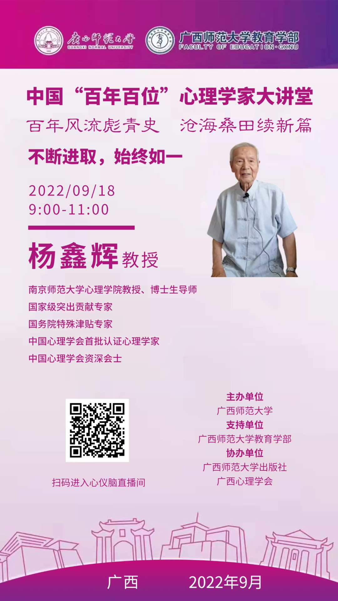 杨鑫辉教授,南京师范大学心理学院教授、博士生导师。国家级突出贡献专家、国务院特殊津贴专家、中国心理学会首批认证心理学家、中国心理学会资深会士。